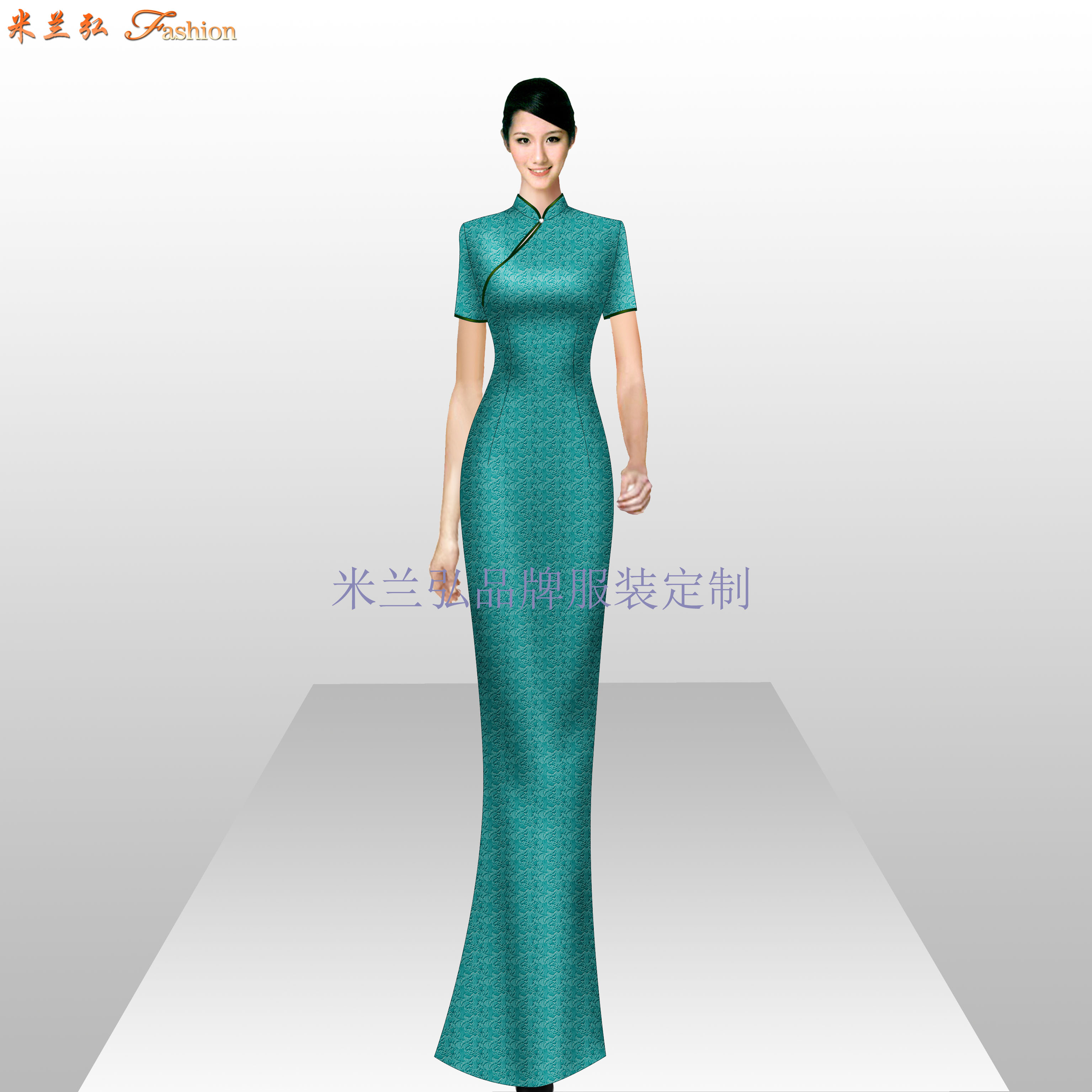 中式优雅旗袍图片,礼仪旗袍定做款式图片:Chinese elegant qipao picture, custom qipao style picture for etiquette 米兰弘欢迎各企事业单位来我公司指导、洽谈工作服订做。