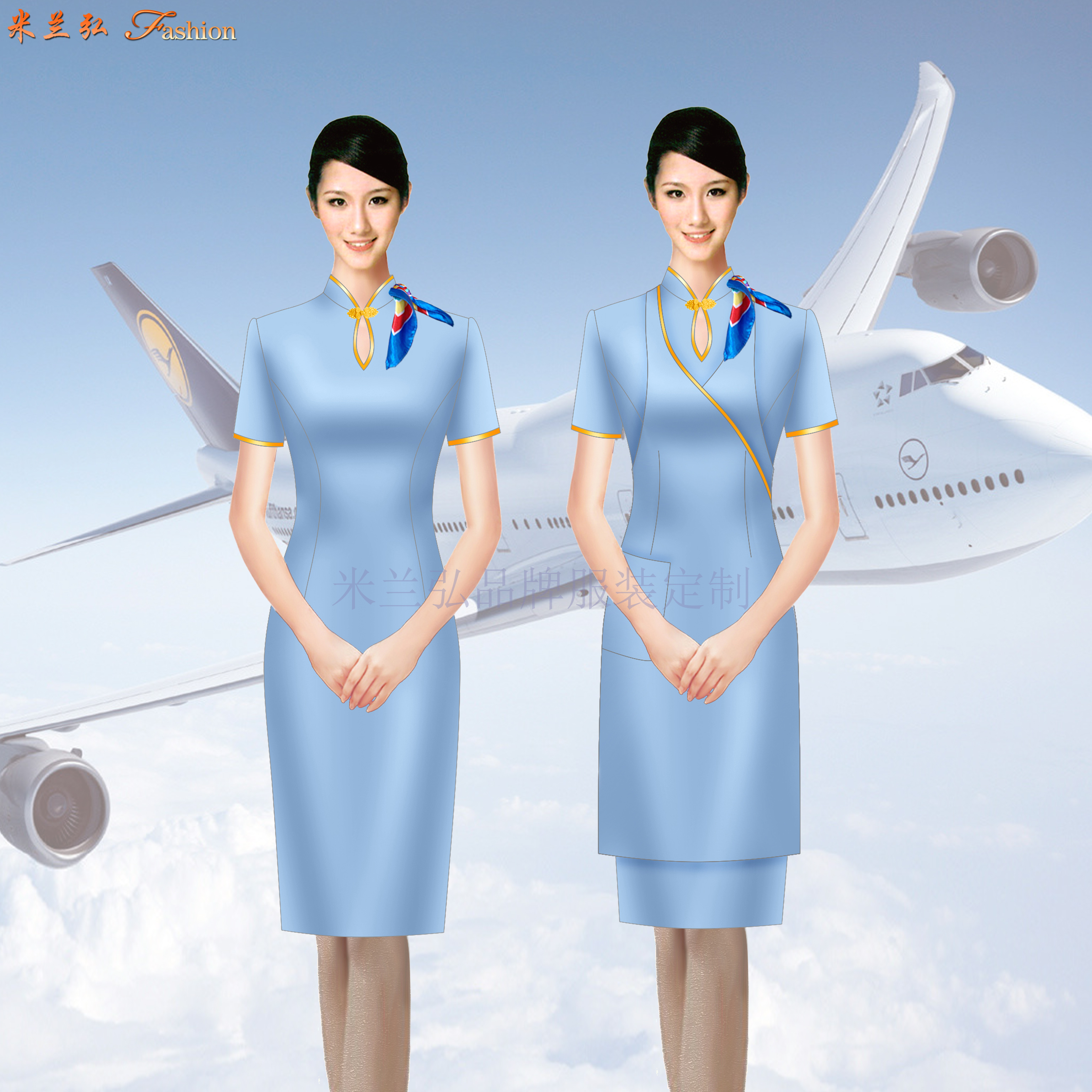 飞机空乘人员服装订制图片,高铁乘务员制服订制图片:Customized uniform images for flight attendants and high-speed rail crew members 米兰弘欢迎各企事业单位来我公司指导、洽谈工作服订做。