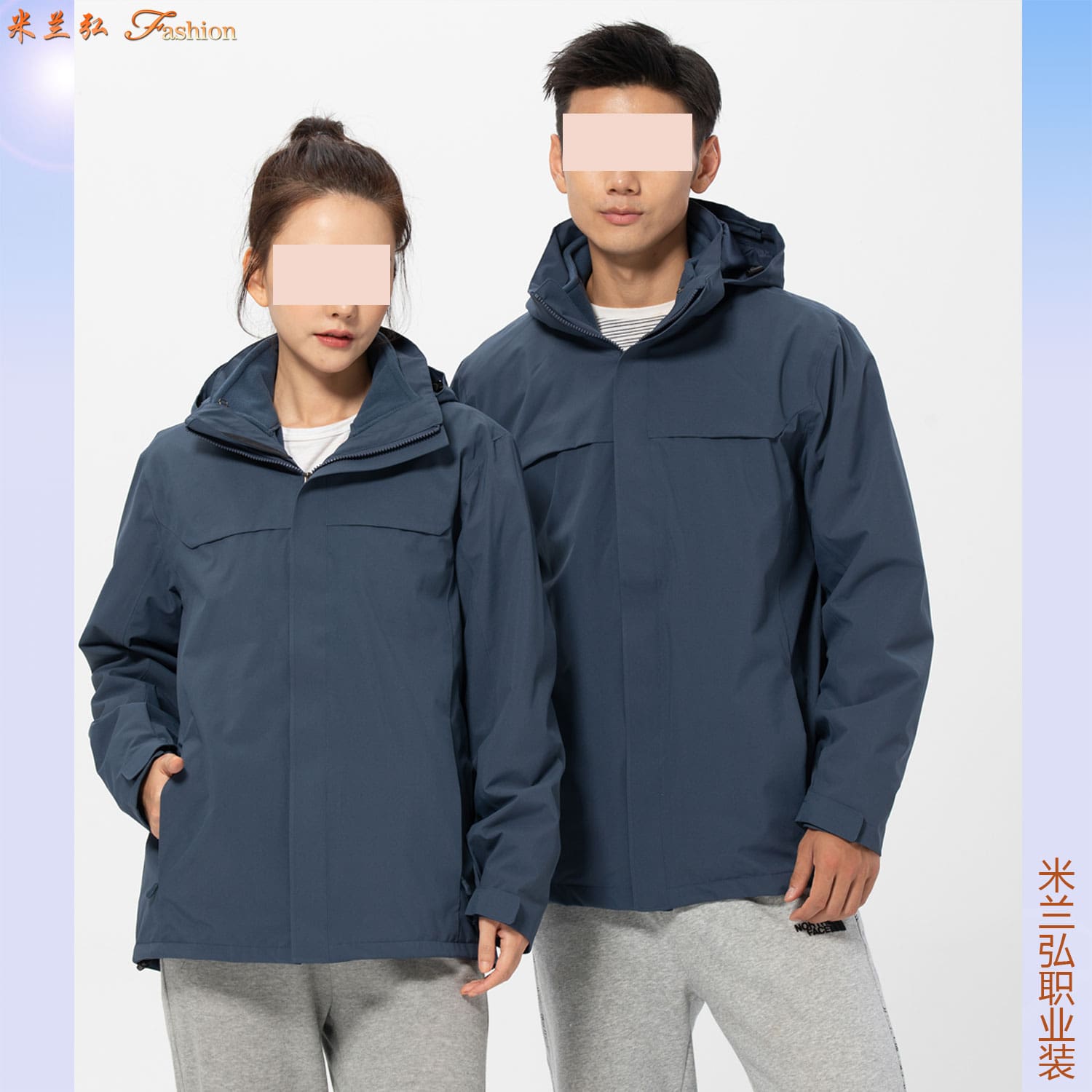 米兰弘三合一冲锋衣定做图片,厂家直供户外专用防风防寒冲锋衣图片 :Customized Images of Milan Hong San-In-One Down Jacket, Manufacturer Direct Supply Outdoor Windproof and Cold-Resistant Down Jackets 米兰弘欢迎各企事业单位来我公司指导、洽谈工作服订做。
